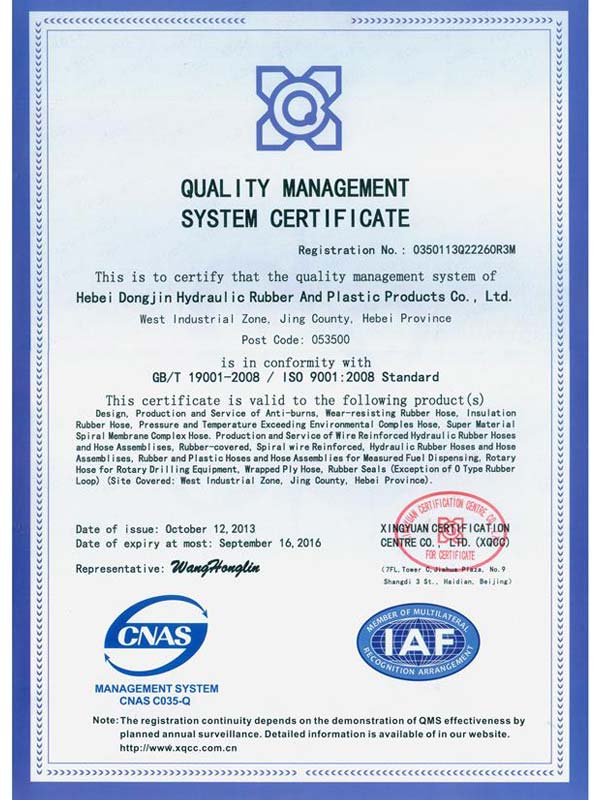 • 鋼絲編織管采用國際標準認可認可證書